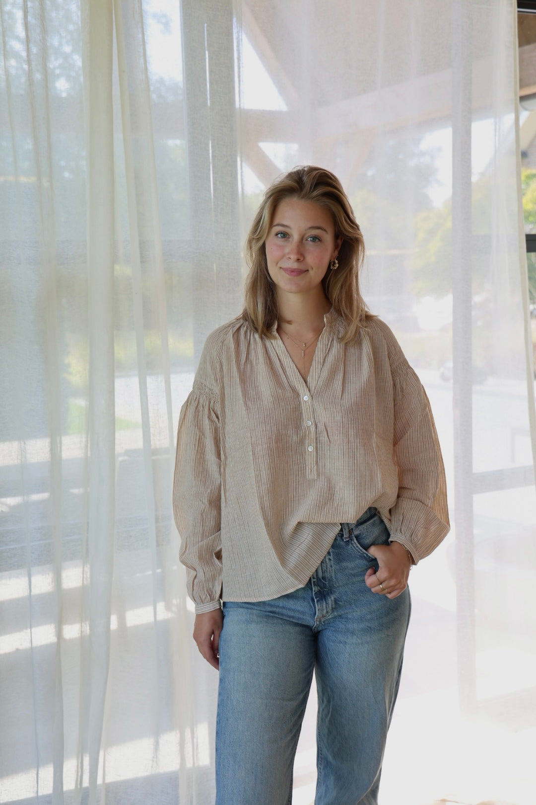 - Blouse Katoenen Voile met fijne streepjes