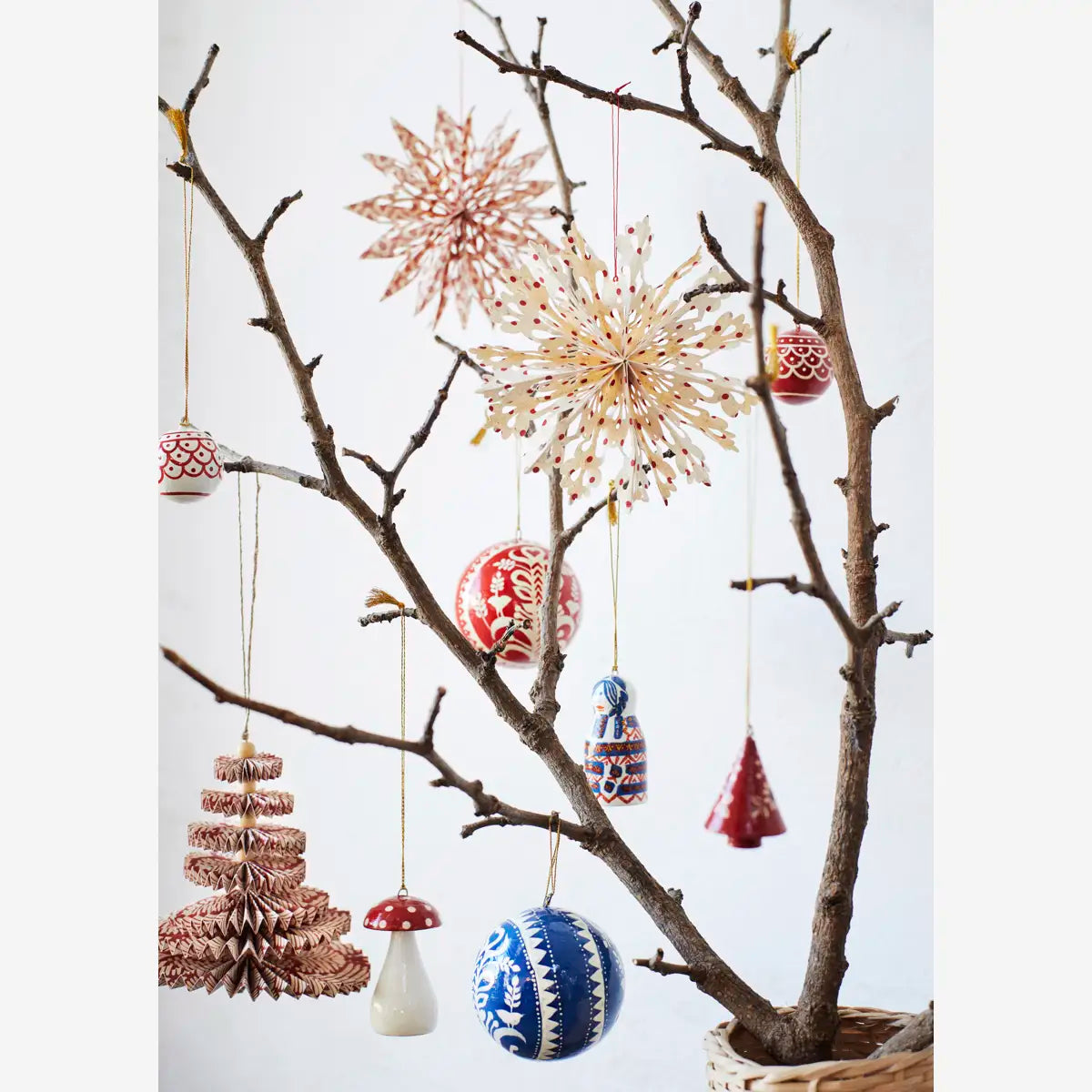 Deze paddestoel is gemaakt van oude kranten, geheel met de hand gemaakt.