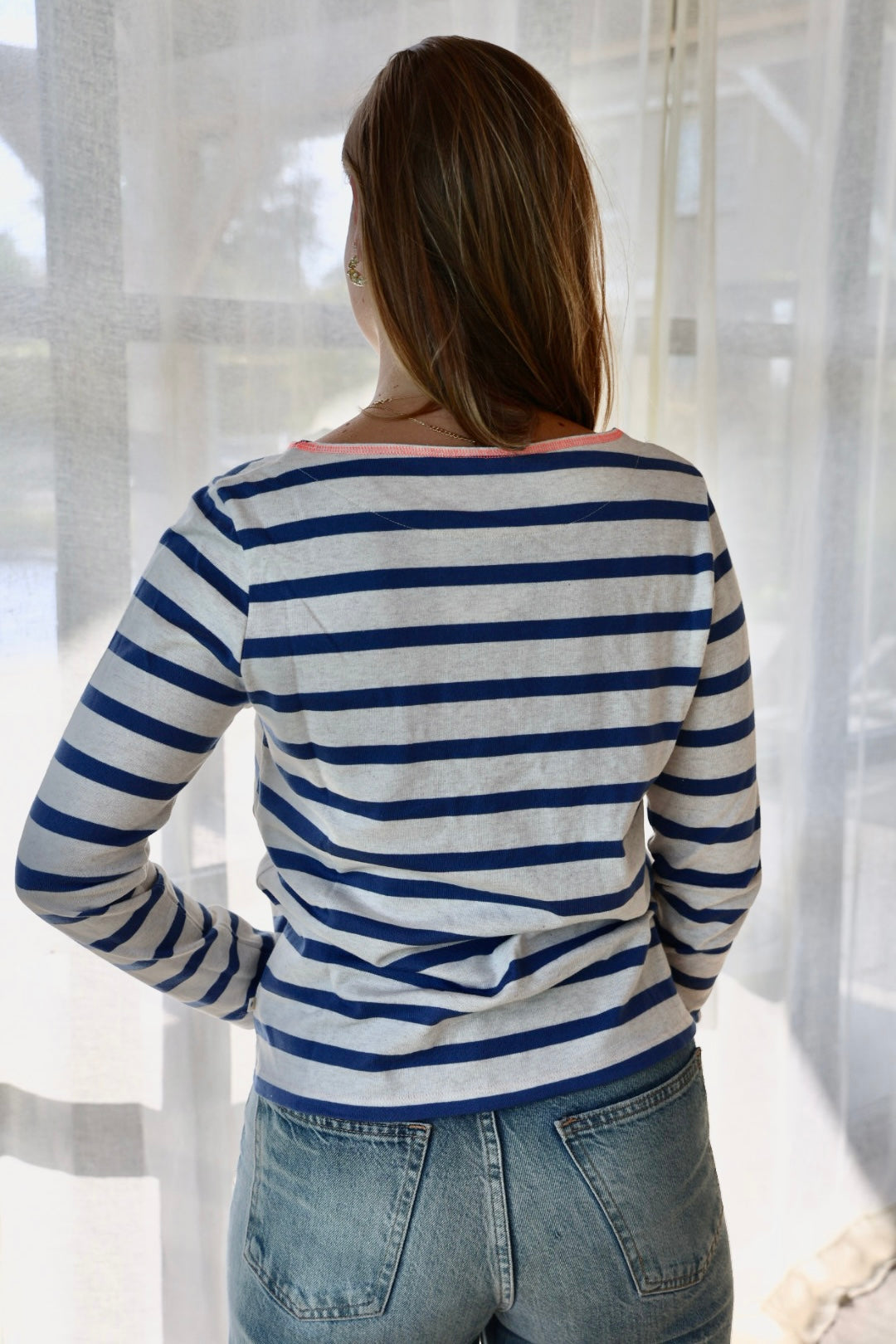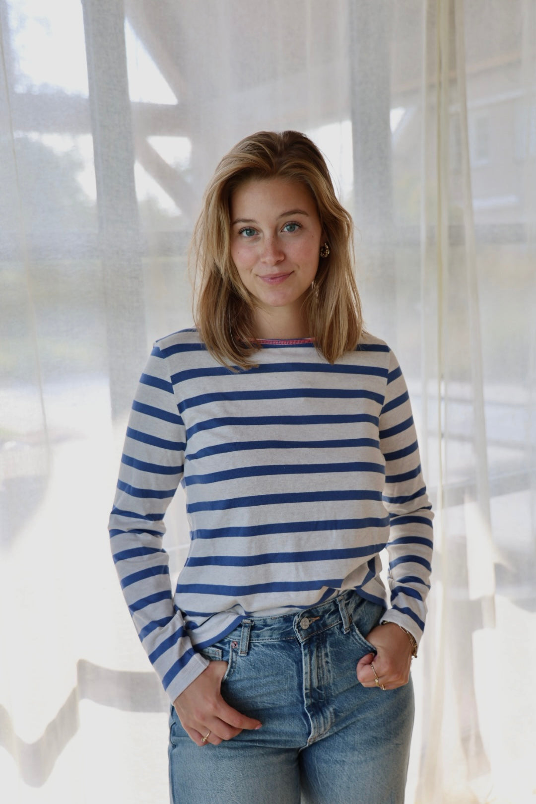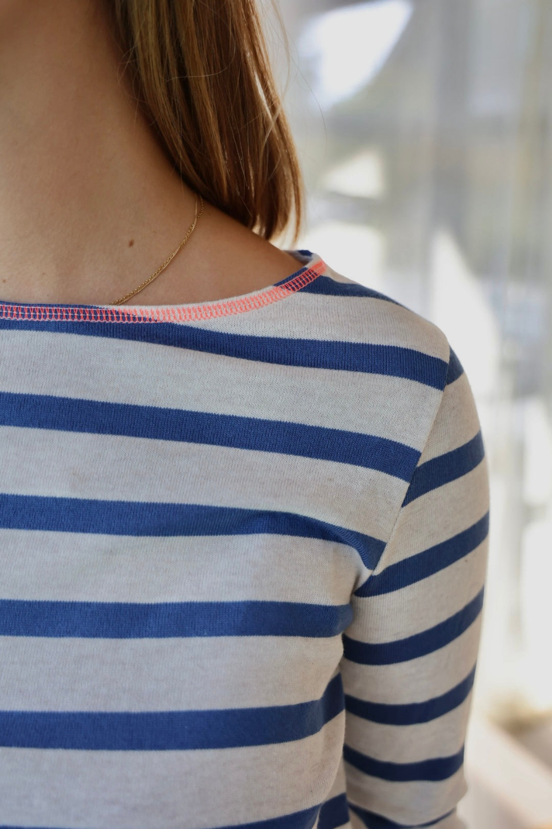 • Boothals met contrasterende stiksels op de voor- en achterkant.